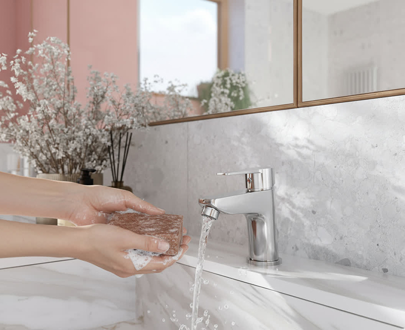 Slim geometric body shapes combined with ultra-thin flat spouts reflect the latest design trends. The soft, rounded edges give the faucets refined elegance. The collection’s original design is emphasized by the timeless chrome finish. TALASSA allows for complete bathroom outfitting with stylistically cohesive fittings, while perfectly complementing accessories from the NOSTRIS and SMILE lines. The result is an interior that impresses with minimalist aesthetics and harmony.